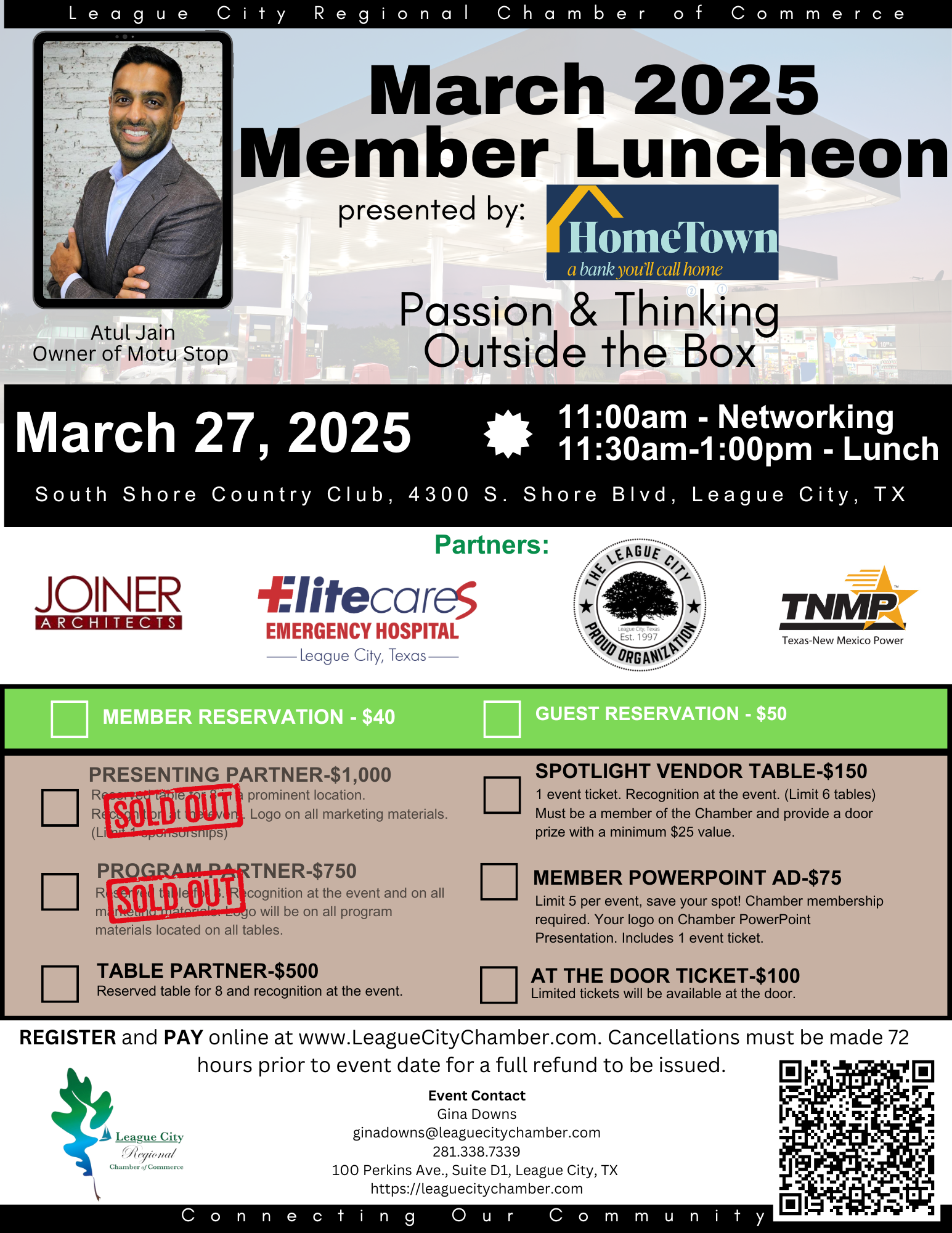 Join us for an Inspirational Luncheon featuring Atul Jain, owner of Motu Stop as he shares his journey of passion and the power of thinking outside the box.