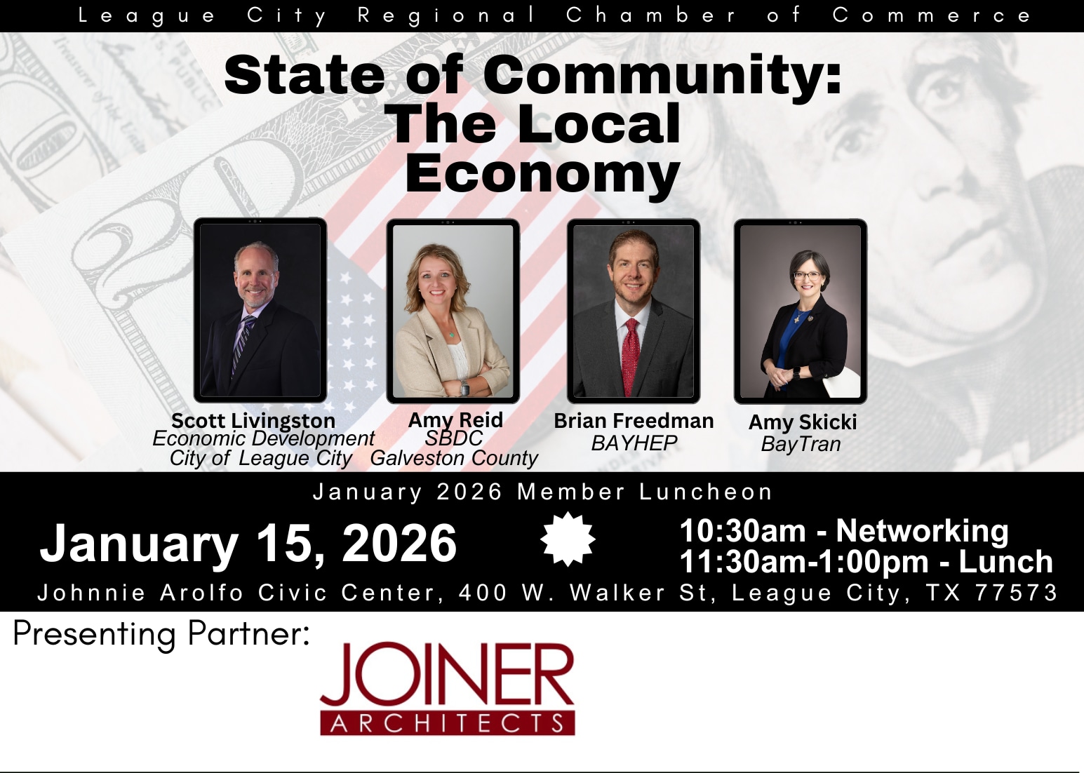 Together, they’ll discuss the trends, challenges, and opportunities impacting local businesses, infrastructure, workforce development, and community investment — giving attendees a comprehensive look at how our local economy continues to evolve and thrive.