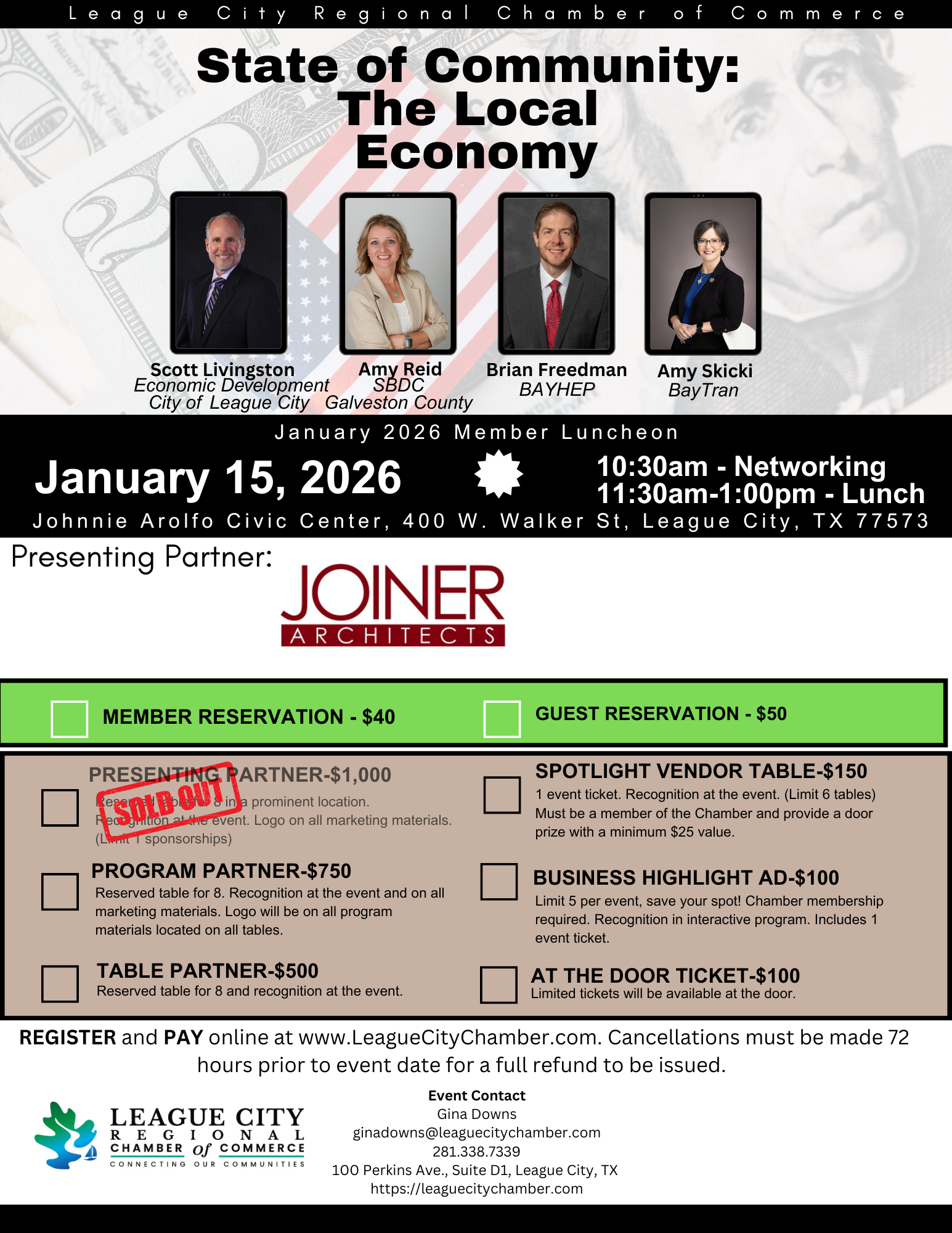 Join us for a powerful morning of insight, connection, and celebration at the State of the Community: The Local Economy event, where we’ll take a closer look at the forces shaping League City’s economic landscape and what’s ahead for our region.